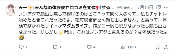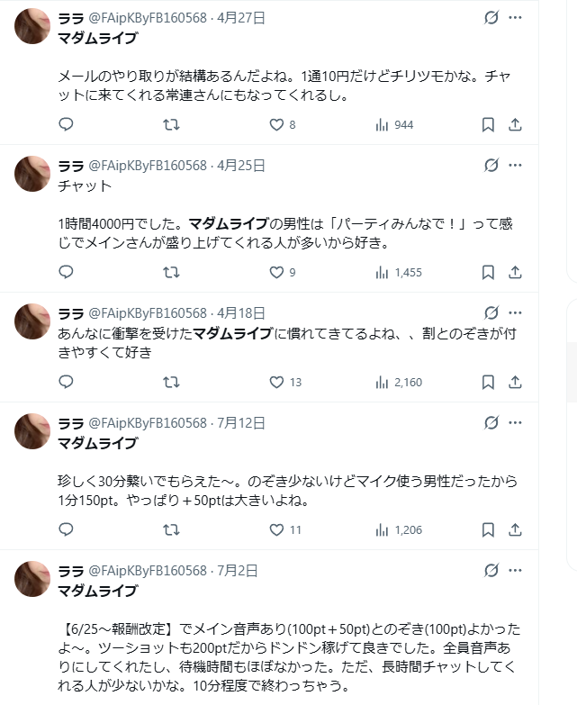| 通勤2ショットチャット報酬 | 1分 ~51円 |
